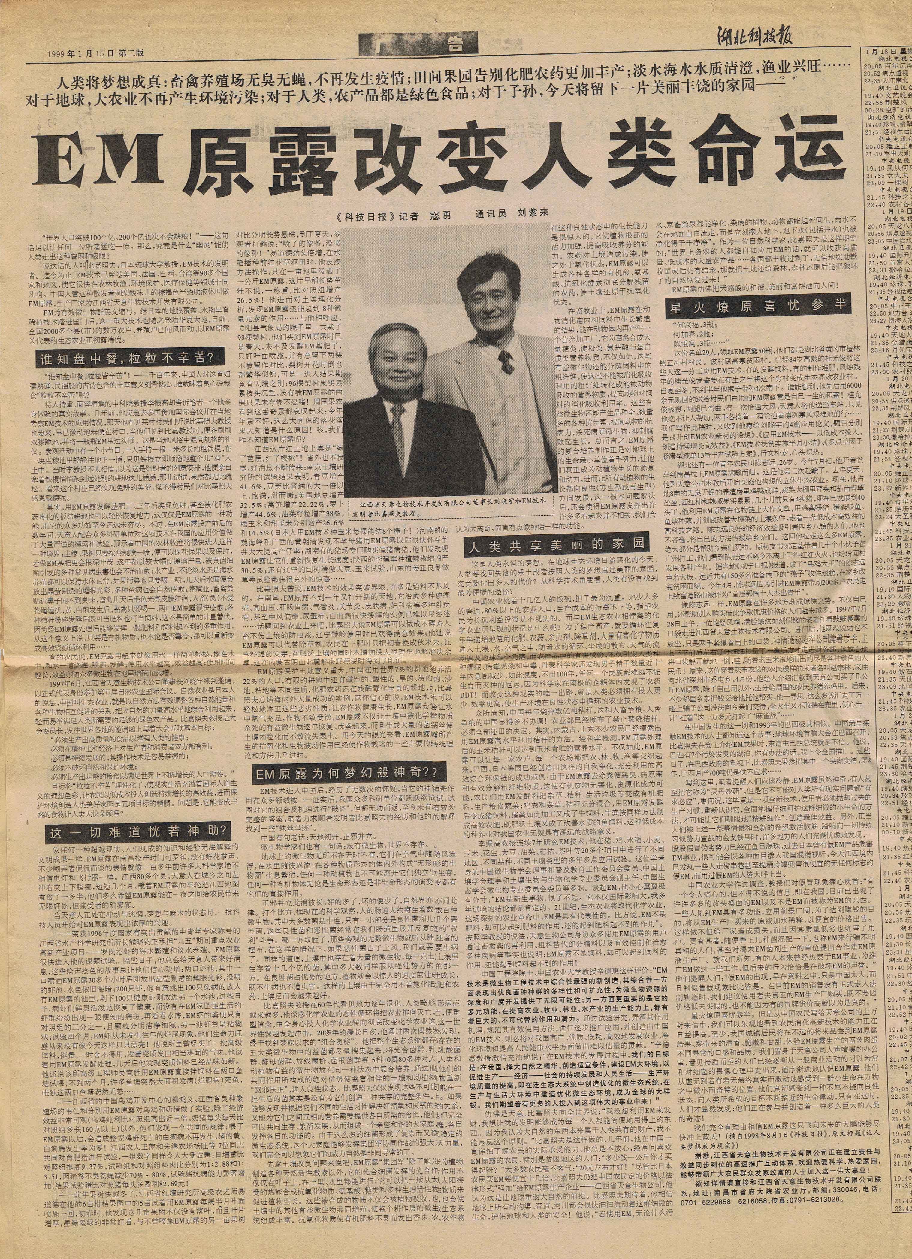 1997 1997年,継《中國畜牧水產報》、《科技日報》、《經濟參考報》、《江西日報》等媒體發表長篇通訊《EM原露正在改變世界》,各省科技、農業報刋均紛紛轉載,EM原露在江西最初的使用效果迅速在全國范圍內興起了一股熱潮,兩年內共簽定縣級代理合同500余家。